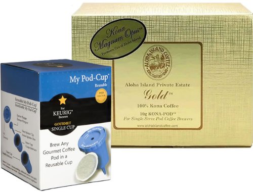- Our fabulous Premium 100% Pure Kona Coffee Keurig K-Cup Starter Kit gives you one Pod Adapter AND our very exclusive GOLD 100% Pure Kona Pods(Box of 12)