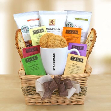 Let this gift inspire good feeling and a fresh outlook with all the ingredients for a great day. Enjoy Sumatra Coffee, Caffe Verona or Starbucks delicious House Blend in your personal Starbucks logo ceramic mug. For quieter moments, brew from this assortment of Tazo Teas and enjoy with biscotti and shortbread cookies. A winning combination.B004DIFVYAASIN
