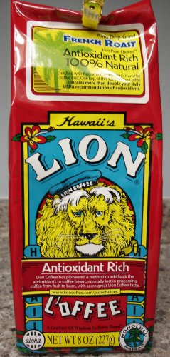Pure 100% Hawaiian Kona Coffee beans, this makes a rich and delicious bold brewed coffee or an excellent espresso. Made from beans carefully selected and roasted to achieve a premium coffee experience. Sealed in a foil bag for freshness.LION 100% Kona Coffee French Roast Ground Feature